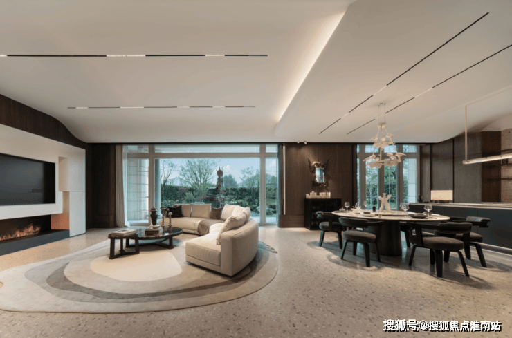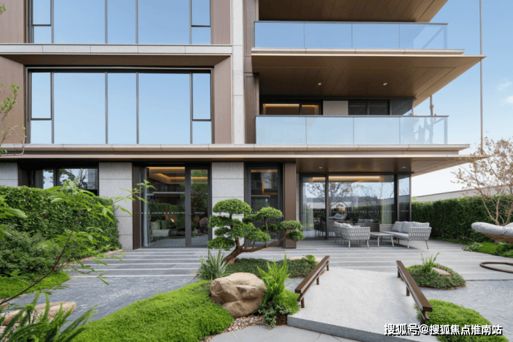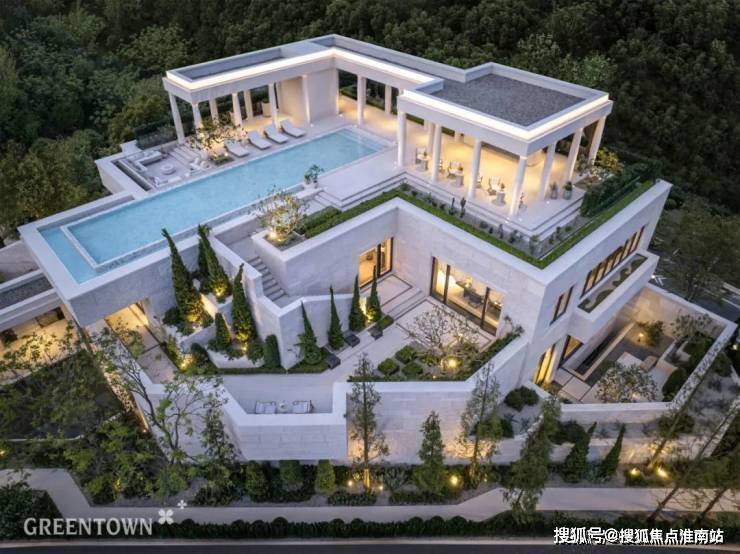 叠墅部分则延续了“现代形,东方意”的咏溪云庐设计语言,以香槟色铝板与玻璃幕墙为主材,通过利落的水平飞檐与更大窗墙比,营造出轻盈通透的当代感。这种“双线并行”的设计策略,既满足了高净值客户对欧式庄园的审美执念,又契合了新兴财富阶层对现代生活的功能需求。
