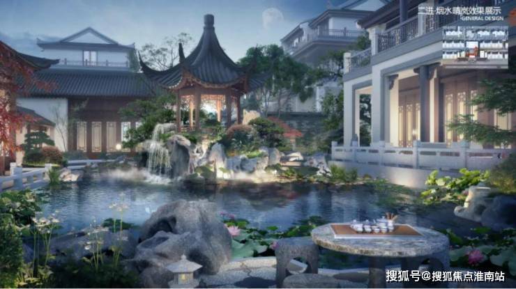 碧水石桥,袅袅林烟。以一池水韵为中心,形成一种向心的、内聚的空间特性。水景即为风水之水,水可化煞“气乘风则散,界水则止”,大利财源。一池水韵通过叠山理水,营造苏式园景,搭配书香亭、风雨连廊等有机互通,形成以小见大的苏式景观,凭栏眺望之时更添身心惬意。