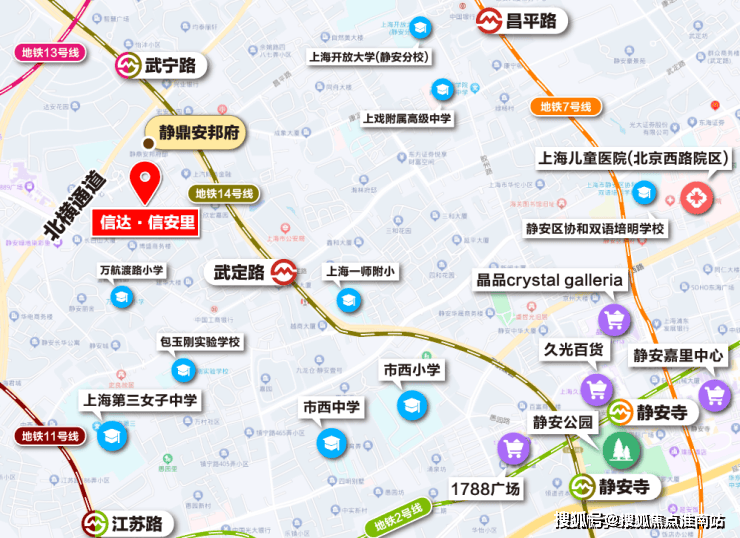 交通配套方面:项目还有着高效的出行系统,增强了通达性.13、14号线都步行可达,武宁路站和武定路站都步行约500米左右.1公里范围内,地铁线路就更丰富了,2号线、7号线的昌平路、隆德路、江苏路、静安寺等市中心地铁站都可步行到达.