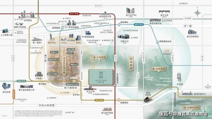 一核双轨:12号线水乡南站(在建,预计2027年底投入使用)(直距约40米);3号线全丰路站(直距约1KM),12站到黄龙体育中心;地铁五站达杭州西站,以西站为核心构成了杭州长三角一小时交通圈的雄心