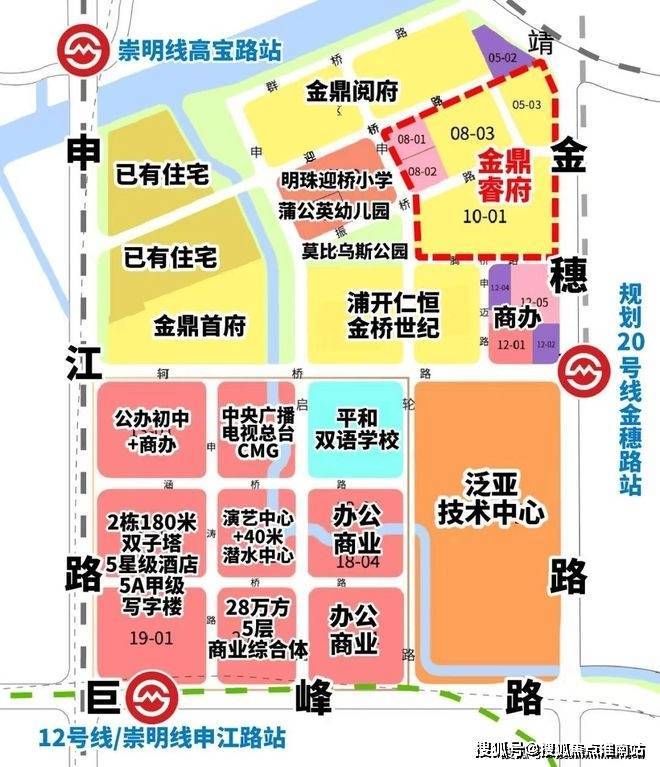 金鼎天地为地铁12号线和轨交崇明线(暂名)申江路站地铁上盖项目,金鼎睿府与12号线申江路站直线距离约1200米,距离规划中的20号线金穗路站约600米。