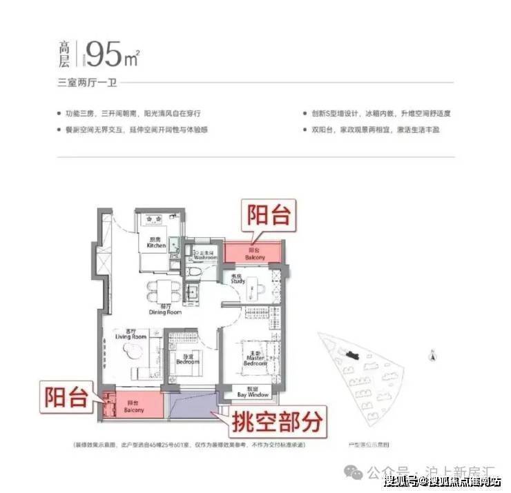 再加上 南向大面宽短进深、全卧飘窗、L型转角阳台设计,哪怕小户型89㎡3房,尺度感都超棒,采光和视野更是一流。