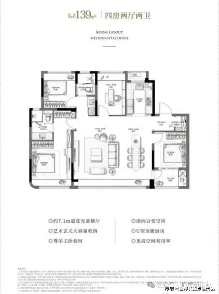 户型设计上,项目一共打造了4种户型——建面约115㎡的3房2厅2卫、约137㎡的4房2厅2卫、约139㎡的4房2厅2卫、约180㎡的4房2厅3卫,开启一场关于洋房空间范式的实践:
