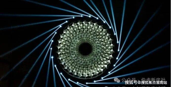 招商序将这种对先锋审美的追求,延续到了约42m宽、4.8m市政界面高度的仪式门厅,更由造价约200万的「栖心之巢」挺拔立起,师法“苏扇开阖”的非遗灵感,打造了金属苏扇艺术装置门庭。