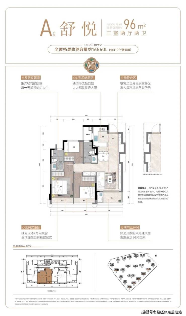 阔绰方厅+双联阳台,通风赏景至佳,还有 U型厨房,三面操作空间,动线流畅好用; 套房式主卧更配置了步入式衣帽间,独立卫浴设计,保证了主人家的隐私和仪式感。