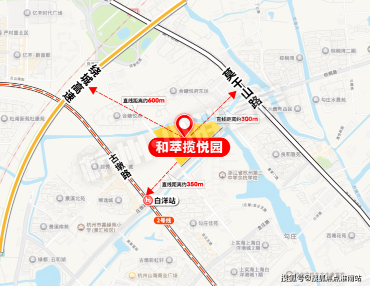 2号线白洋站约330m,步行可达