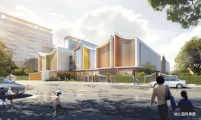 板块内规划了一所九年一贯制学校和一所24班幼儿园。