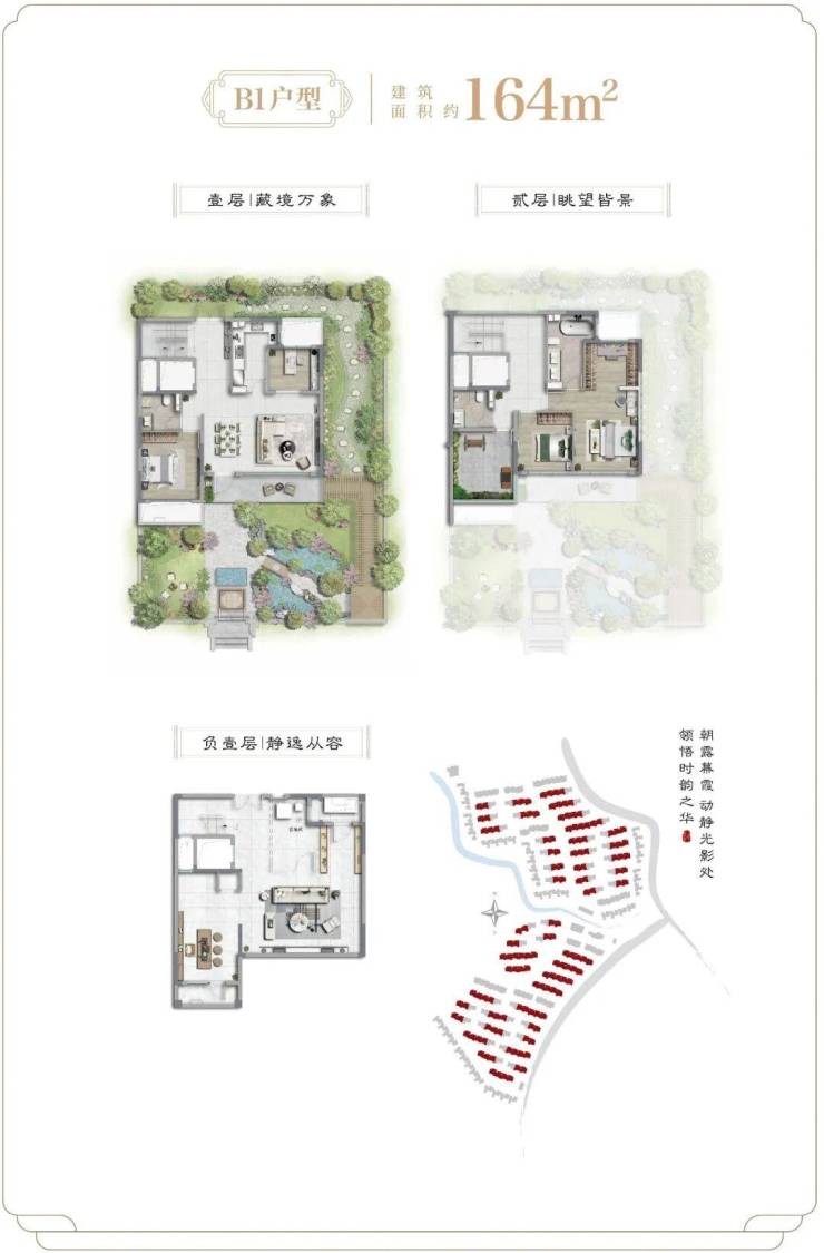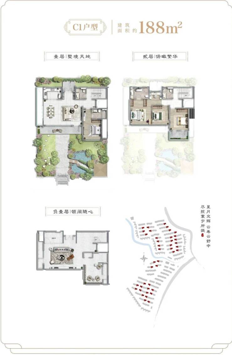 畅想一下入住后的美好场景:在院落里,伺弄花草;在通透的客厅里,三两密友相约,促膝长谈;在露台上,星空夜话;在宽阔的地下室,挥洒兴趣,体验百味人生!