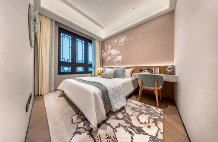 一层主要作为会客功能。样板间将一楼书房空间打开,与餐厨空间相连,更显空间感。还贴心设计了一个父母房,方便老人起居。