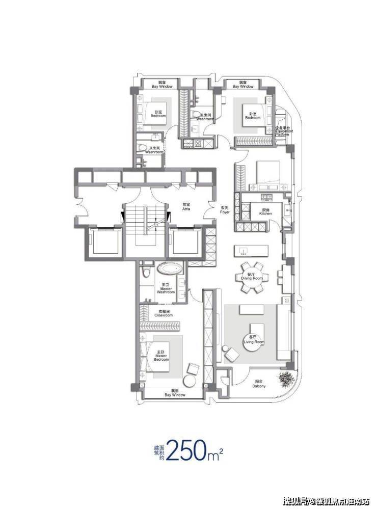 250㎡:内环内·小洋房·正四房;类一梯一户,功能性正四房,边套270度舒适采光,奢适5m+客厅/主卧,享受4000万以上级别的装标及社区品质;内环内稀缺洋房,类一梯一户设计,私密性好;客阳台一体,边套270°舒适采光;5m+奢华主卧套房,与其余居住区分离,尊享私密;储物空间充足;