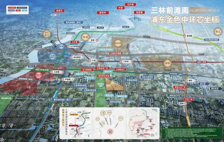 上海买房一直有“东富西贵”之说,“富裕”的发展轨迹,先是一路向东,然后沿着陆家嘴-前滩奔腾而南。随着前滩CAZ的开发已近尾声,滨江核心段价值链需要一个新的承接区域,这个区域沿着三林前滩向南延伸,“金色中环”两侧3-4公里的腹地就此成为前滩外溢的重要承载区。