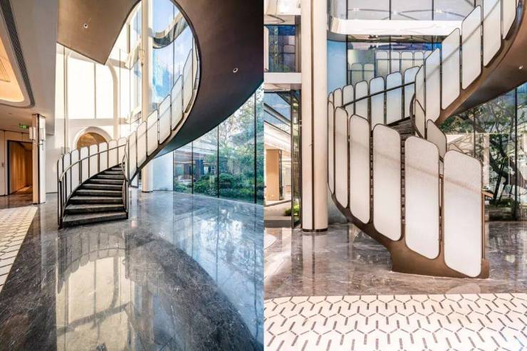 而终于来到我们的单元楼之后,地上与地下双层入户大堂,再次体现尊贵。驾车进入“追光”坡道,香槟金色吊顶,加上穹顶闪耀,进入精装大堂,绚丽的氛围感和高级感直接拉满!