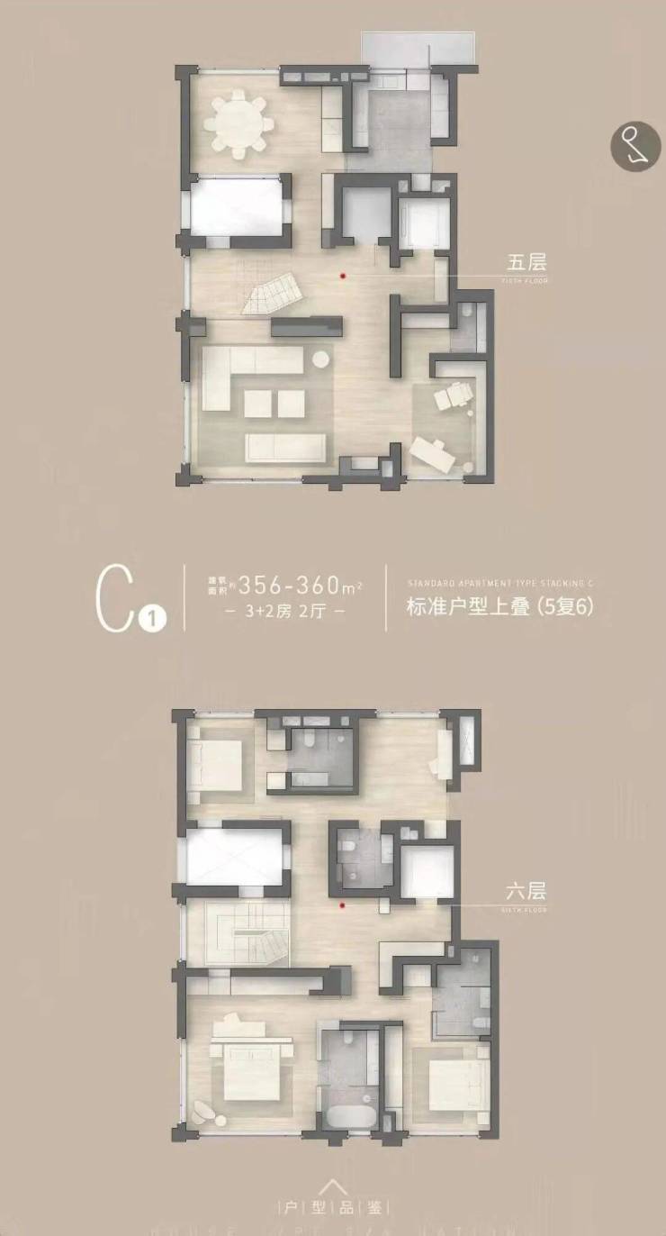 主力户型为约310-360㎡叠墅(1复2,3复4,5复6,共6层)