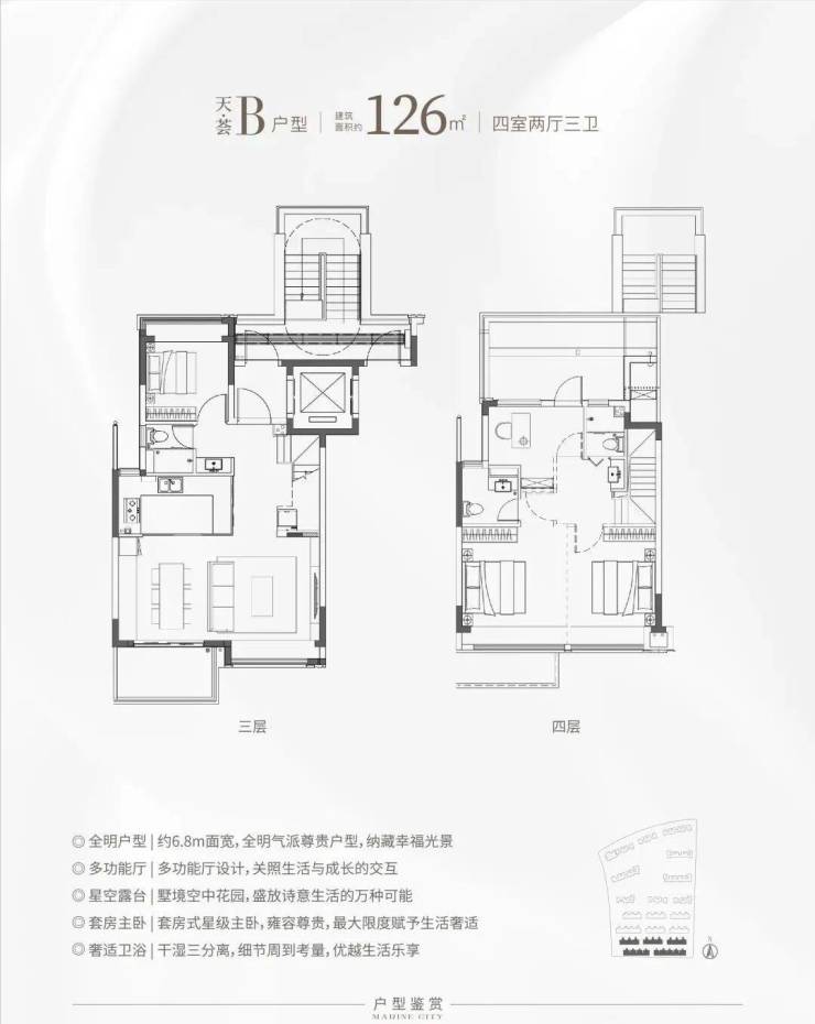 上叠建面约126㎡4房2厅3卫