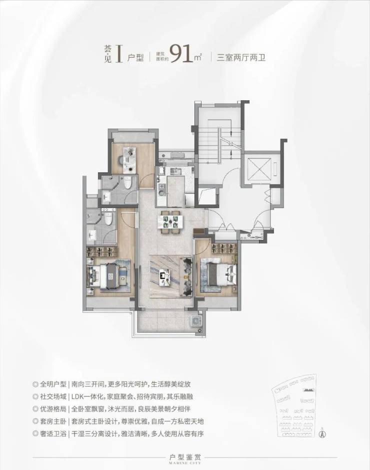高层建面约91㎡3房2厅2卫