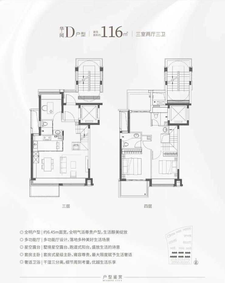 中叠建面约116㎡3房2厅3卫