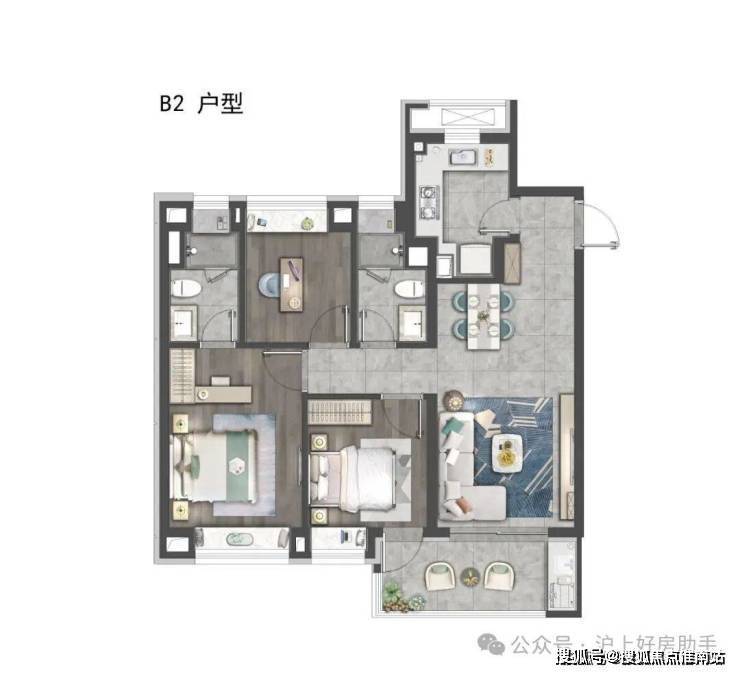 建面约105㎡为5.1米宽厅设计外接大阳台,这对黄金组合一方面撑开户内尺度,另一方面也让通风和采光俱佳。