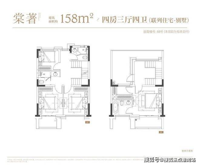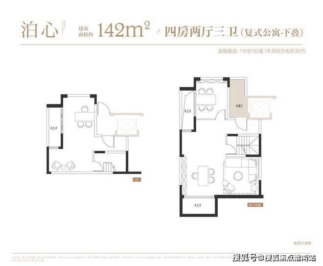 叠墅:叠墅一共四层,分为上/下叠,上叠建筑面积约139㎡,下叠建筑面积约142㎡。