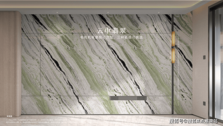 充分考虑业主的个性化需求,在电视背景板提供了新潘多拉、云中翡翠、弗朗明戈金三种结晶釉面岩板选择,成本更高,施工难度也更大。