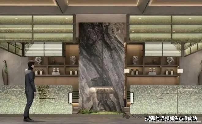 约110M超大尺度城市界面,仪式水景拾级而上,定制级艺术雕塑,酒店礼遇仪式侯迎隐奢归家。