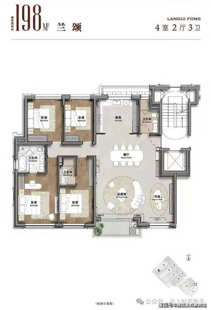2)洋房大平层精装198平4+1房三卫
