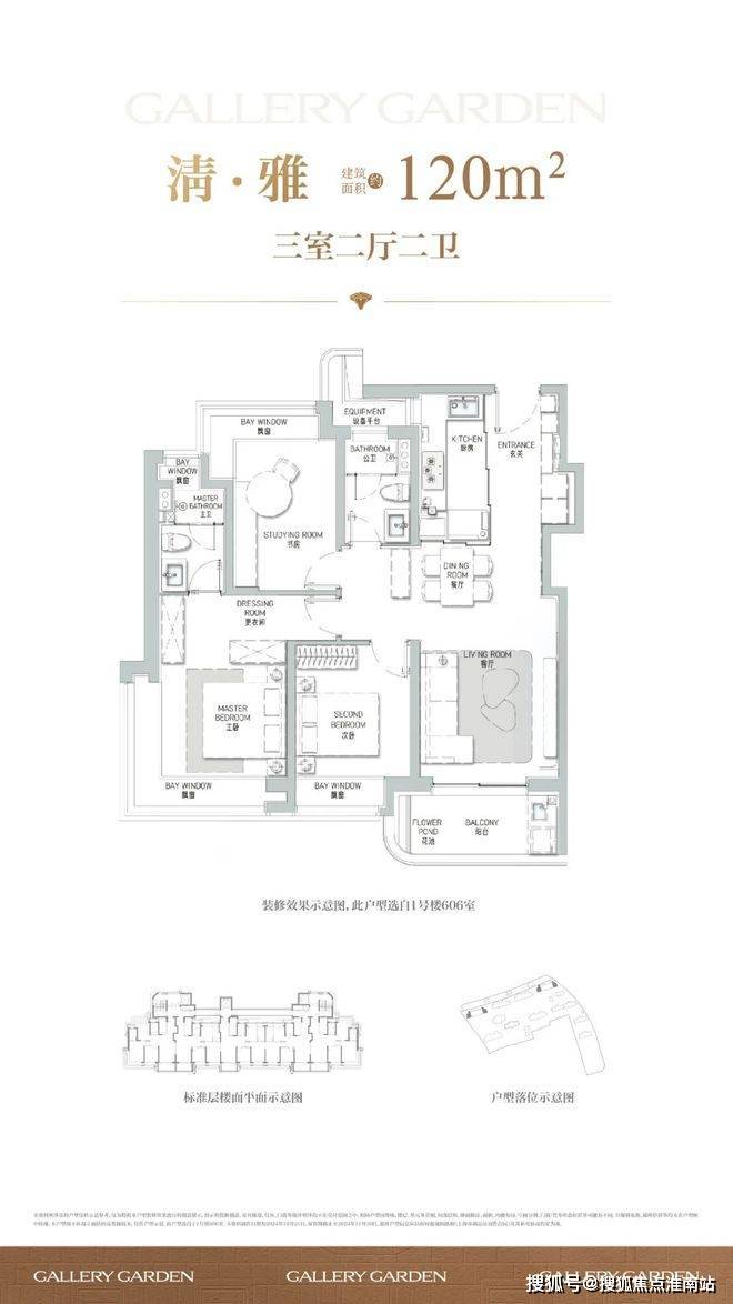 装标,大金的中央空调和地暖,白朗新风。厨房标配博士的三眼灶、油烟机、洗碗机和冰箱,134加配蒸烤一体机;卫生间高仪的洁具和花洒、科勒的龙头。