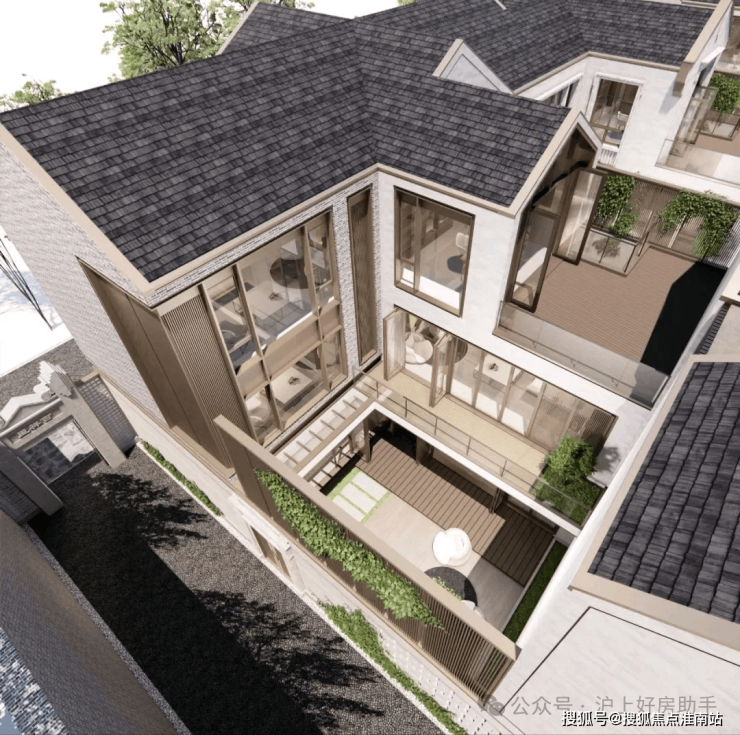 【士林润园】由103席建面约300-500㎡合院式风貌别墅组成,总价约6500万起,是上海城心唯一纯合院别墅小区。