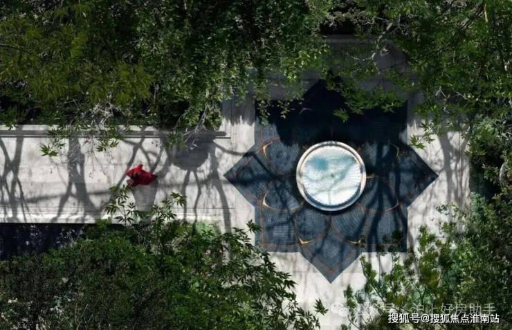 在“润园八景”中,入口迎宾处的“申之华”用“帝王黑”天然奢石等材料,经手工切割打磨拼装勾勒出玉兰花造型,旁立百年广玉兰古树,形成传统与现代的时空对话。