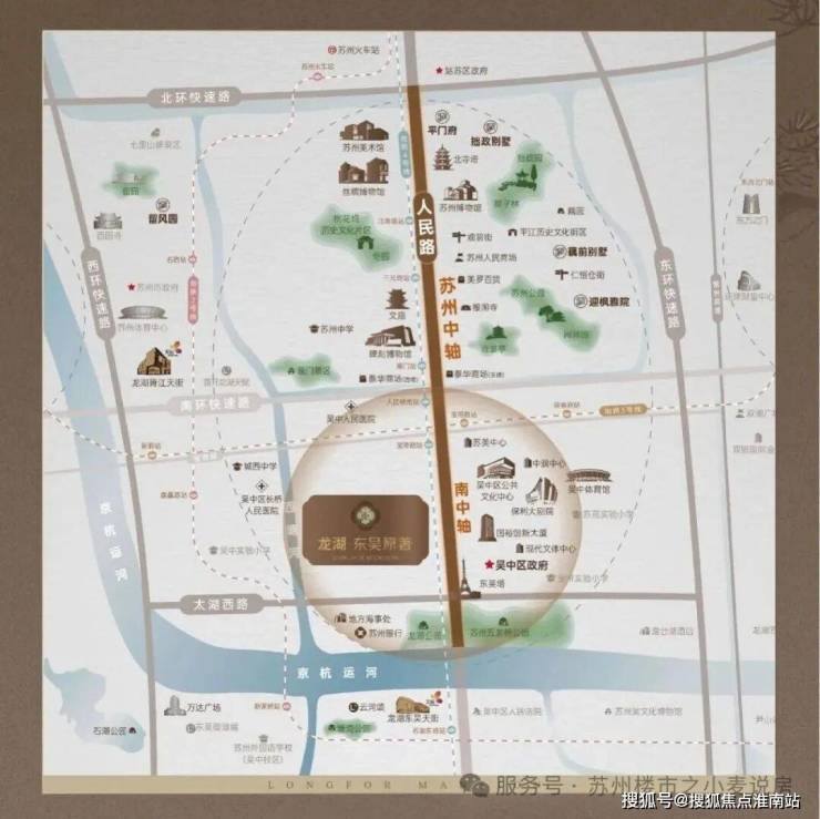周边有苏州地铁线2/3/4号线环绕,吴中万达、东吴龙湖天街也在不远处,一路之隔还是吴中区政府,无可争议的核心地段。