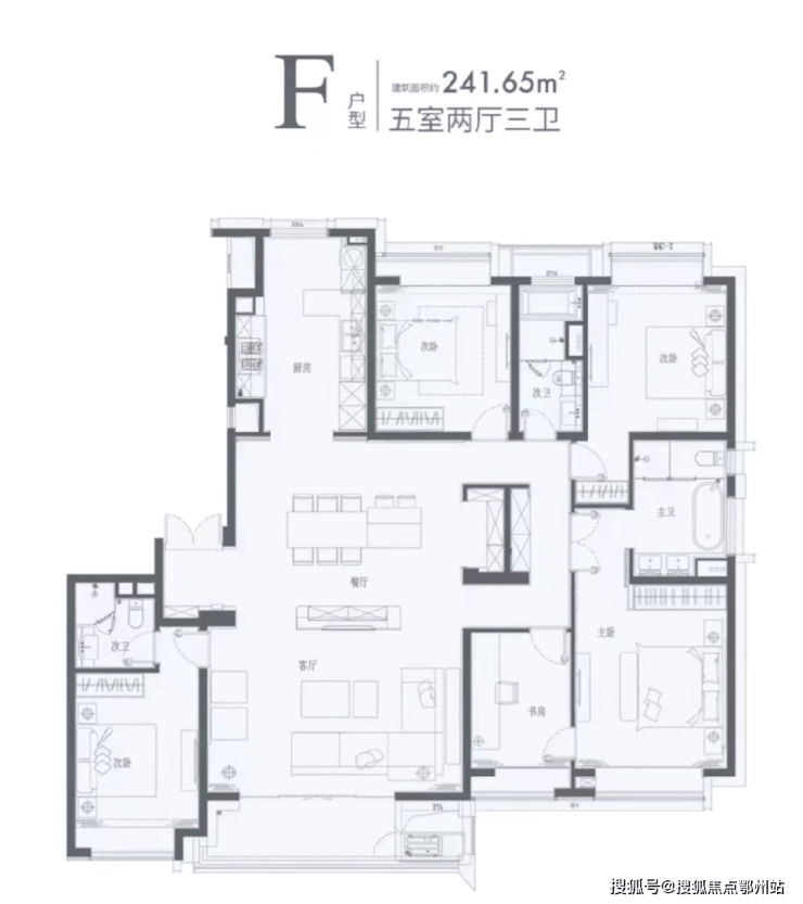 五居室:建面约241㎡(楼王户型,收官在售)