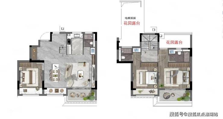 总统套房设计:主卧+南阳台 +形超大北露台,超绝空间享受。