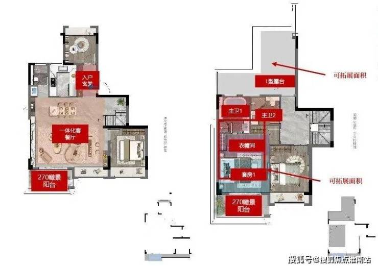 总统套房享受:奢阔空间,轻松实现主卧+南阳台+北露台。