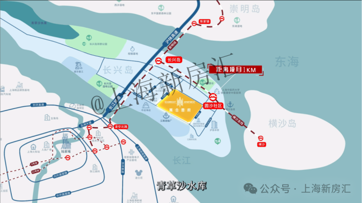 项目在售户型面积约45-156㎡,总价90万起,单价可根据总价及户型面积估算。物业费暂未明确公示,楼层总高暂无公开信息。交通上,在建轨交崇明线长兴岛站紧邻项目,未来1站可达浦东曹路,2站至外高桥,3站到金桥,出行便捷度高。