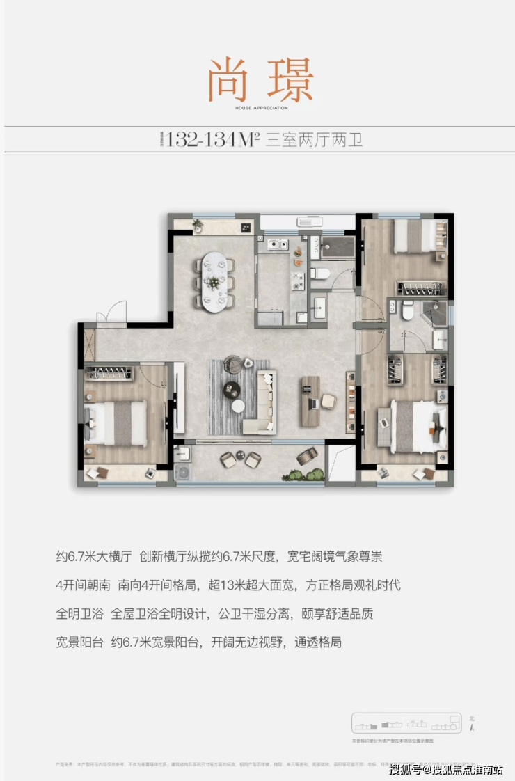 中建颐璟薹售楼处电话400-9966-224户型点评:大尺度南向四开间,不只带来视野提升,更契合当下生活对阳光、通风的更高诉求;宽度约6.7米的横厅是点睛之笔,可自主隔离一间功能房,居家办公室、健身房、电竞房随心改造,品质感直线拉升。