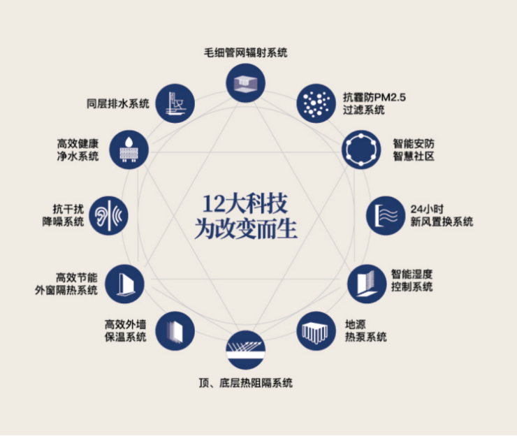 金茂引领行业的“绿色健康科技住宅”基因必将在此延续和升级。从温度、湿度、空气、水质、光照到噪音控制,一套完整的五舒十二大科技系统将是标配。