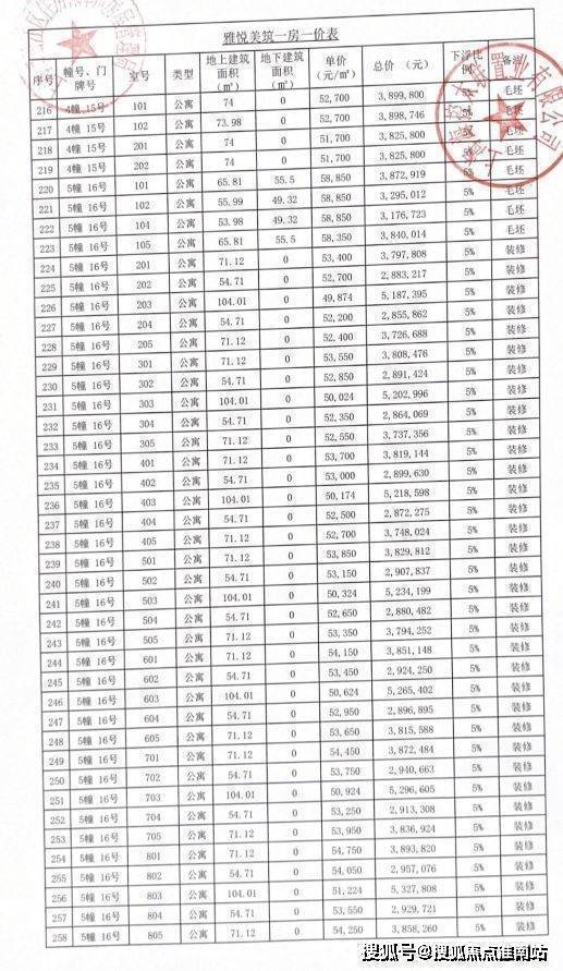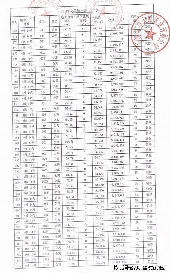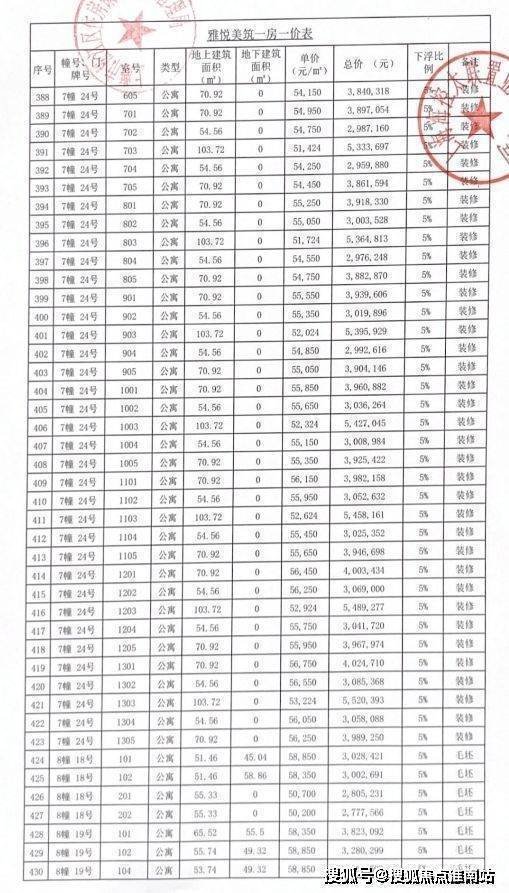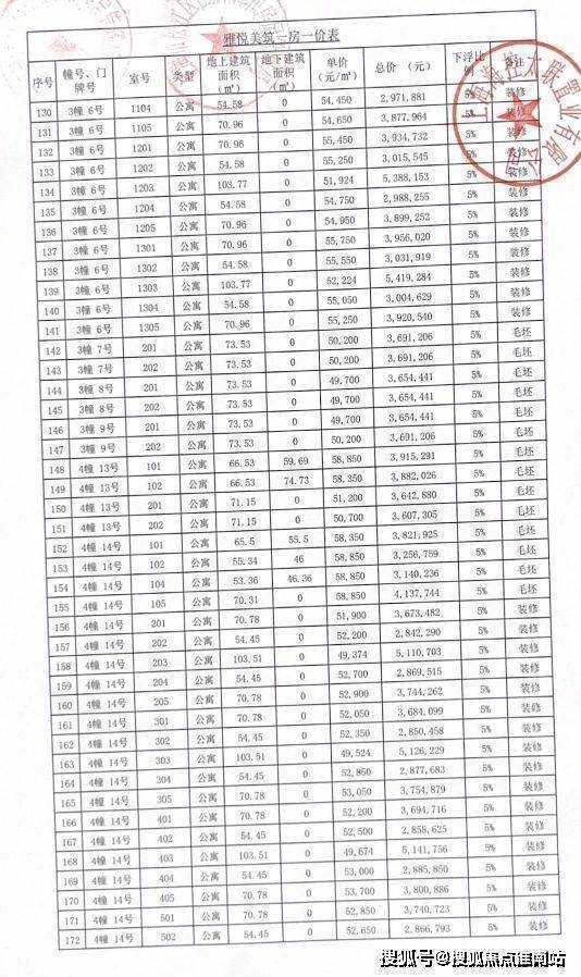 完整一房一价表如下:
