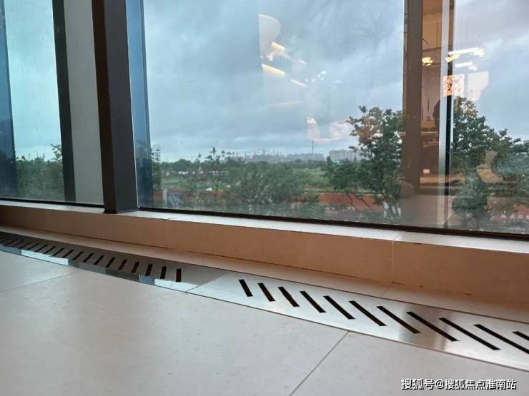 另外,上海梅雨台风季节较多,所以浦发东望设置了阳台排水槽,即使未来业主选择不封阳台,这个设计能把雨水迅速排出,避免积水也避免室内受潮湿影响。