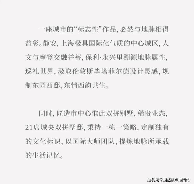 城央风貌别墅,上海中心之上,拥揽城市奢配资源,具有稀缺的资产属性,天生自带定价权,成就穿越市场周期的资产优选配置。保利永兴里售楼处电话:400-891-9910✔✔✔