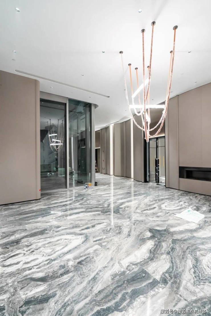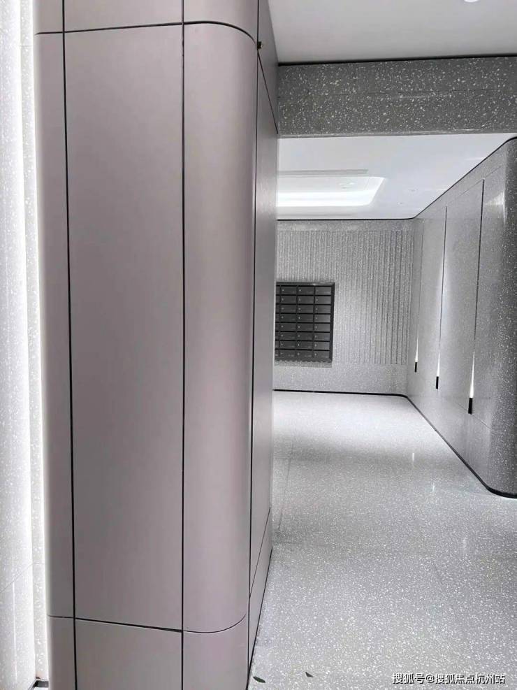 走进实体楼栋,首先就是映入眼帘的这约6米左右层高的门厅挑高大堂。