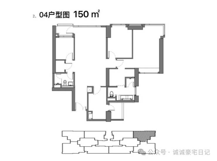 标准层建筑层高3.3米,得房率约77.4%,三梯四户,使用私密性较好。