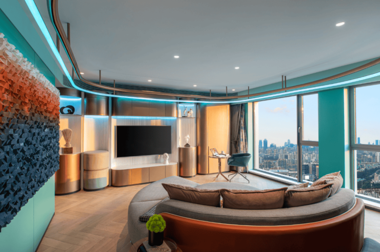 更值得一提的是位于五层的共享空间,精心打造的艺术场景别具一格,将艺术气质充分融入建筑中。在公共区域的装饰上,悦麟特别邀请了四位艺术家为项目专属打造了原创环境音乐“TIME”、特调环境香氛“少年”“瑞麟”雕塑以及“麒麟”油画,处处彰显着现代国际化时尚艺术的气息,带给业主不一样的立体感官享受。