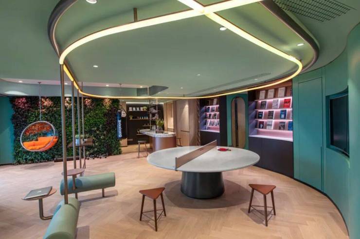 交友、会客、读书、赏景……公共活动空间作为一个多功能空间,不仅拥有吧台、休闲洽谈区、共享会议等社交空间,还配备有健身、阅览等娱乐空间。处处可见的时尚元素,也更加符合当下年轻人的喜好。