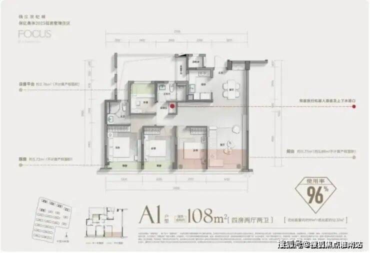 4房灵动布局(北面小房间面宽都有约2.4米),让建面约108㎡的户型,也可实现3.7米面宽开阔 竖厅,让一个入门级小户型,也有约 40㎡餐客厨空间。