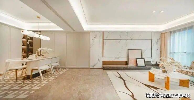 值得一提的是,约55平的 宴会级无界方厅,采用 LDKB一体化设计,将客餐厅、厨房、阳台全部打通,形成一个开放灵活的多功能聚厅。