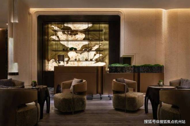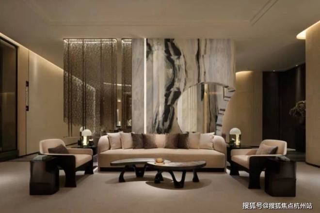 越秀·外滩樾的会所在地下三层。他们在会所中做了造型各异的奢石景墙,用各种隐约可见,来分隔和连接不同的功能空间。
