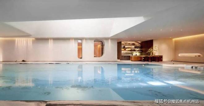 室内恒温泳池一端设计了很有古典气息的奢石涌泉,形制复刻自古罗马浴场。泳池的上方设计了珍贵的自然采光,阳光投入碧波,会给你带来「天光水影共徘徊」的美好感受。