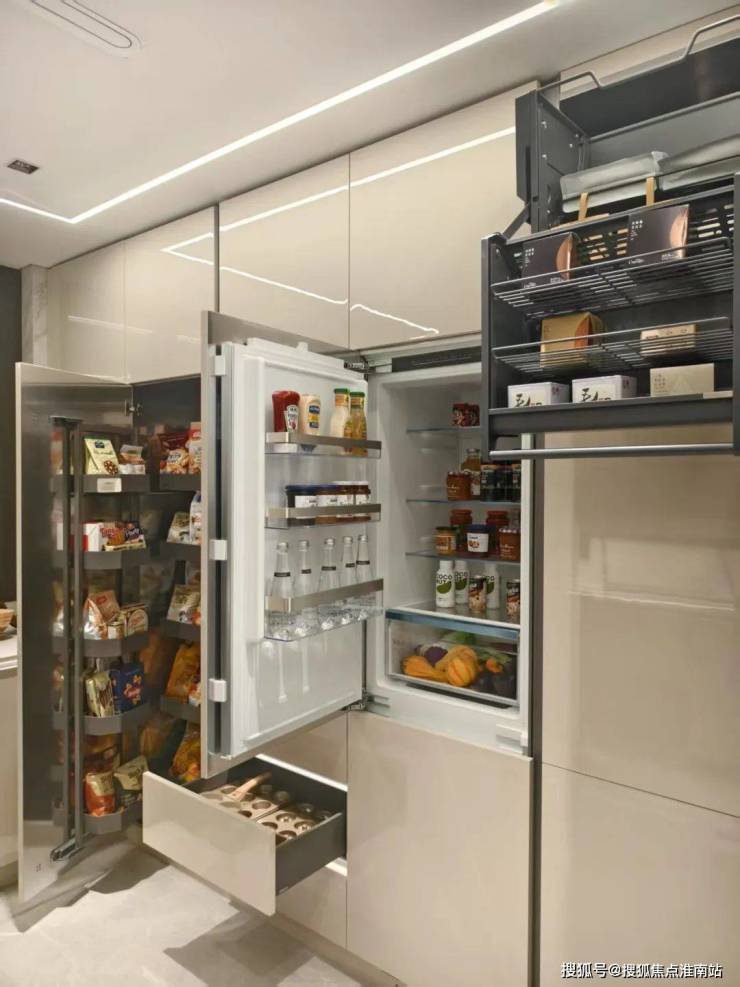 厨房区域同样是细节满满。美诺四件套+博世双冰箱的配置够高:
