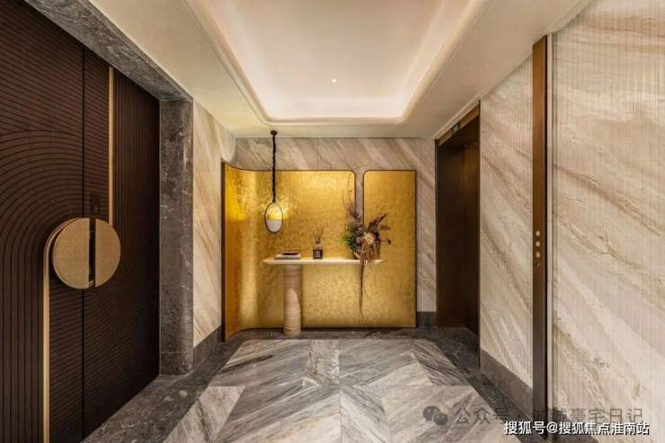 比如,弧形、奢石与灯光等相得益彰且设计感满满的架空层。