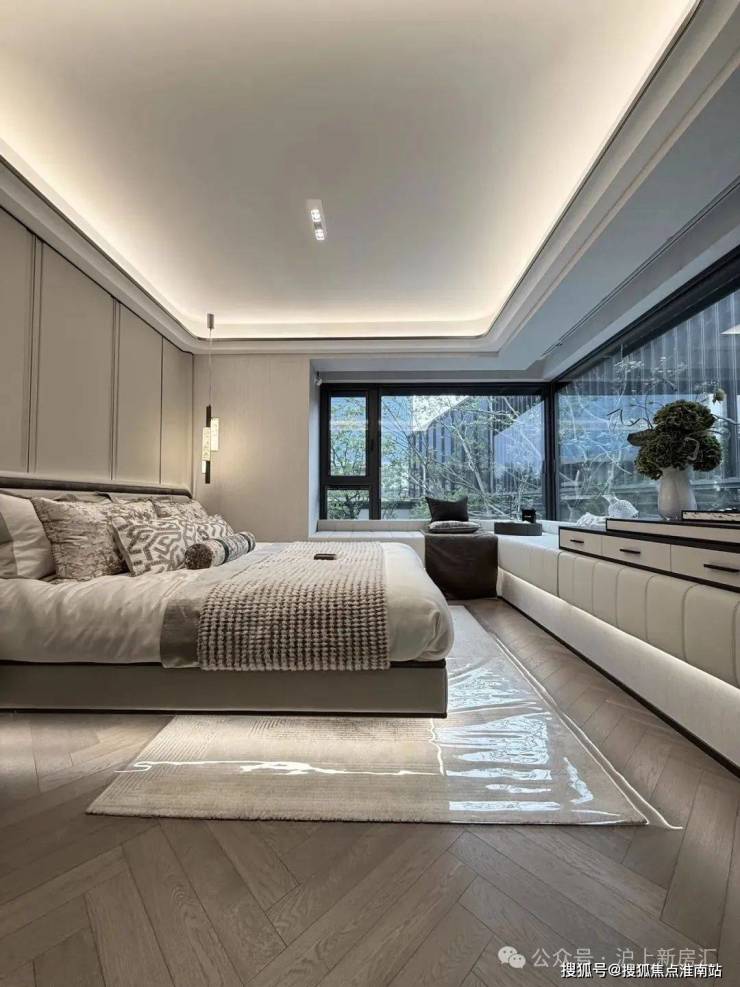 尤其是主卧大套房安排上独立衣帽间+独卫,配上270度的转角飘窗,一扇窗就是一幅流动的四季自然画。