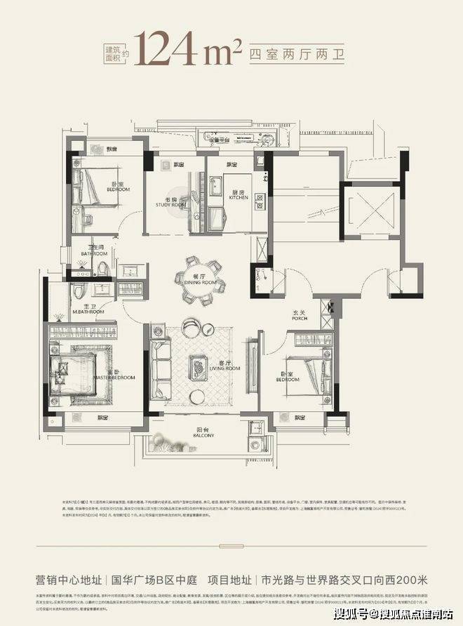 四室两厅两卫:主卧面宽约3.5米,一梯两户无连廊✅✅越秀杨浦天玥售楼处电话:400-8567-004✅✅